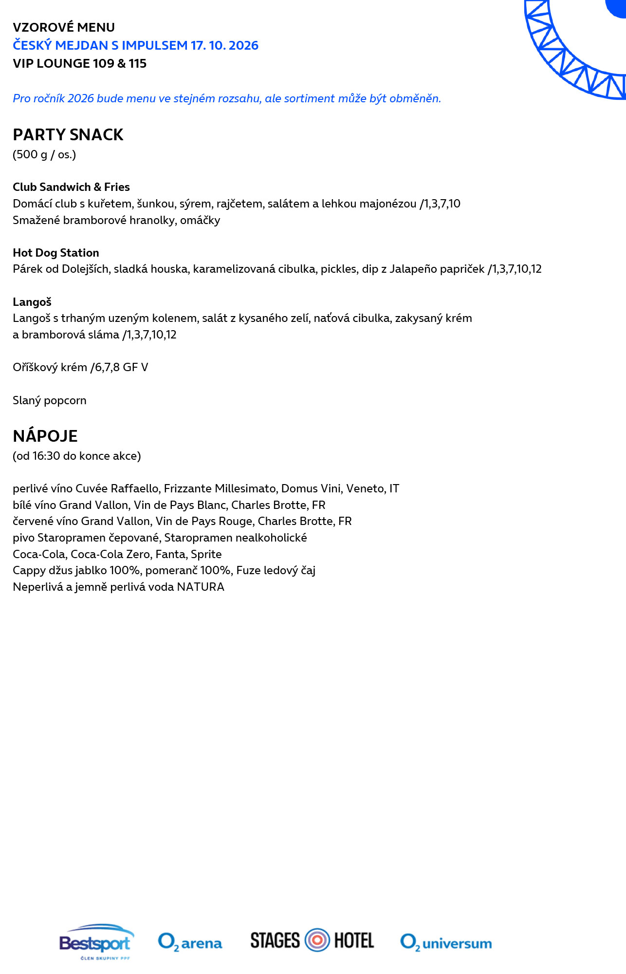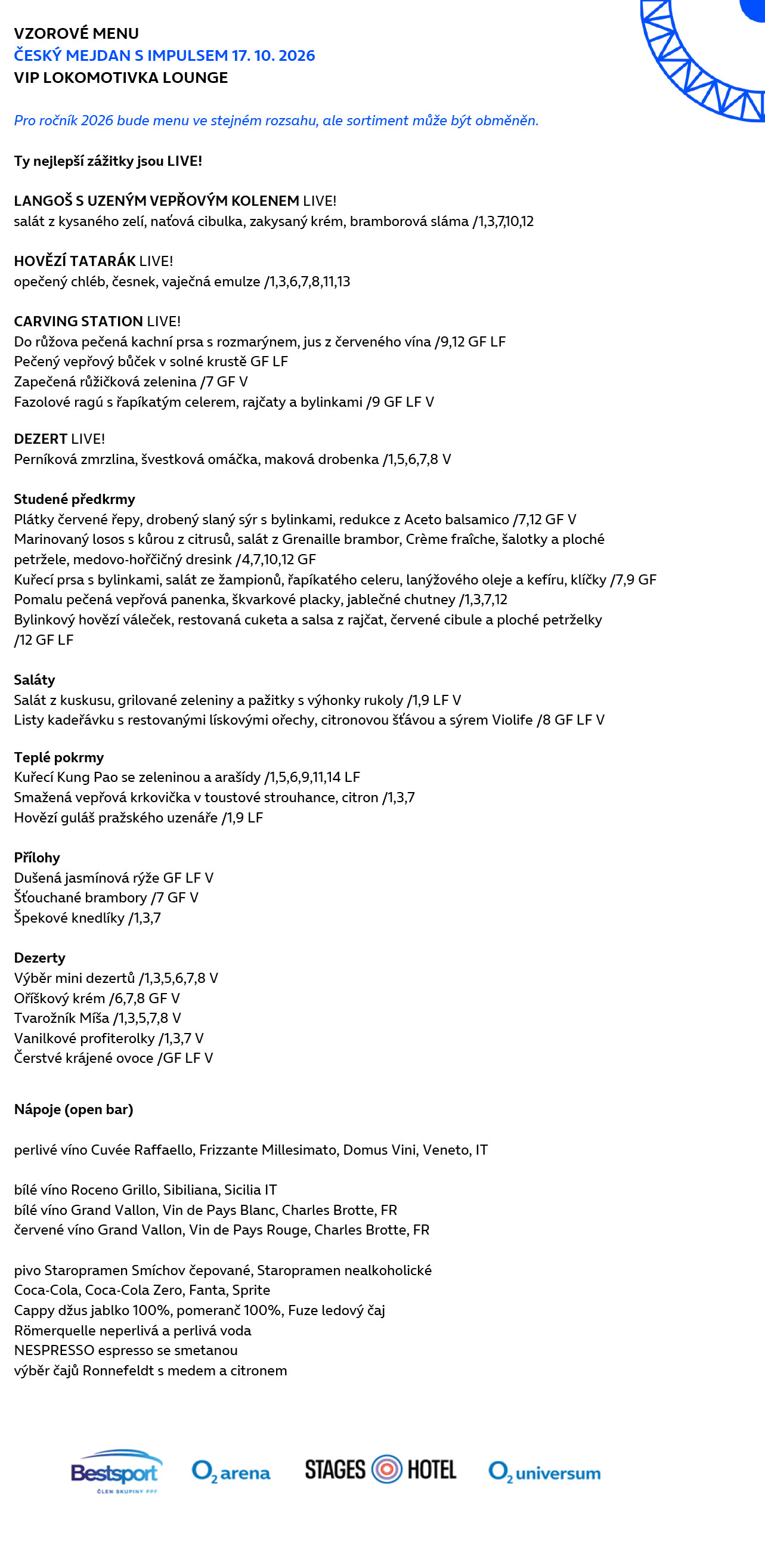 • VIP Bar přímo za sektorem - placené alkoholické a nealkoholické nápoje dle nabídky včetně signature drinks